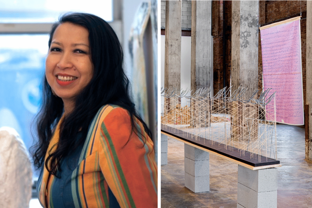 Images L to R: Cecile Chong by Kamron Hinatsu; Installation view, Golnar Adili, To Measure the Emotions of Others. Photo by Etienne Frossard.