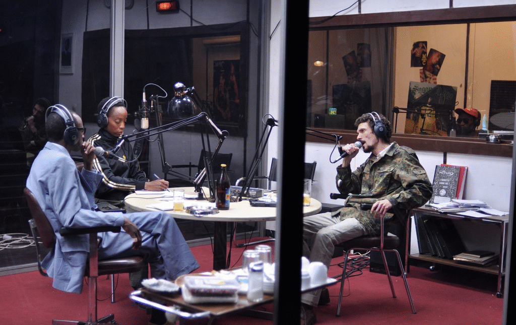 Inside an intimate, glass-walled studio, a radio broadcast unfolds in real time. Through our headsets, RTLM’s daily soundscape of upbeat music, news, and sports blends seamlessly with chilling calls to murder.