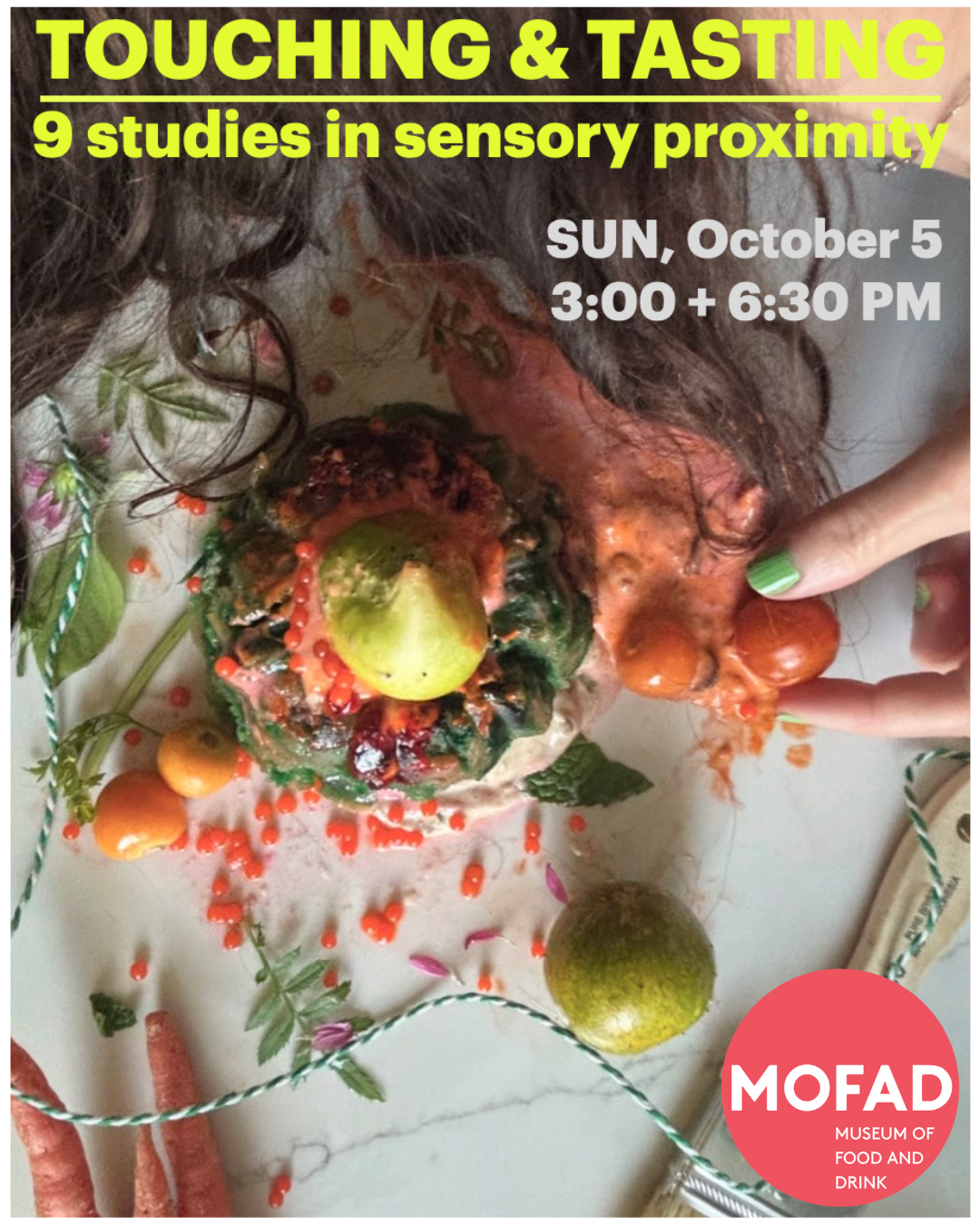 Museum of Food and Drink 55 Water St 2nd Floor, Brooklyn, United StatesMOFAD is having a DANCE PERFORMANCE! Touching & Tasting: 9 Studies in Sensory Proximity is a multi-sensory performance that explores the intimate connection between flavor, texture, and human experience throughContinue reading "Touching & Tasting: 9 Studies in Sensory Proximity"