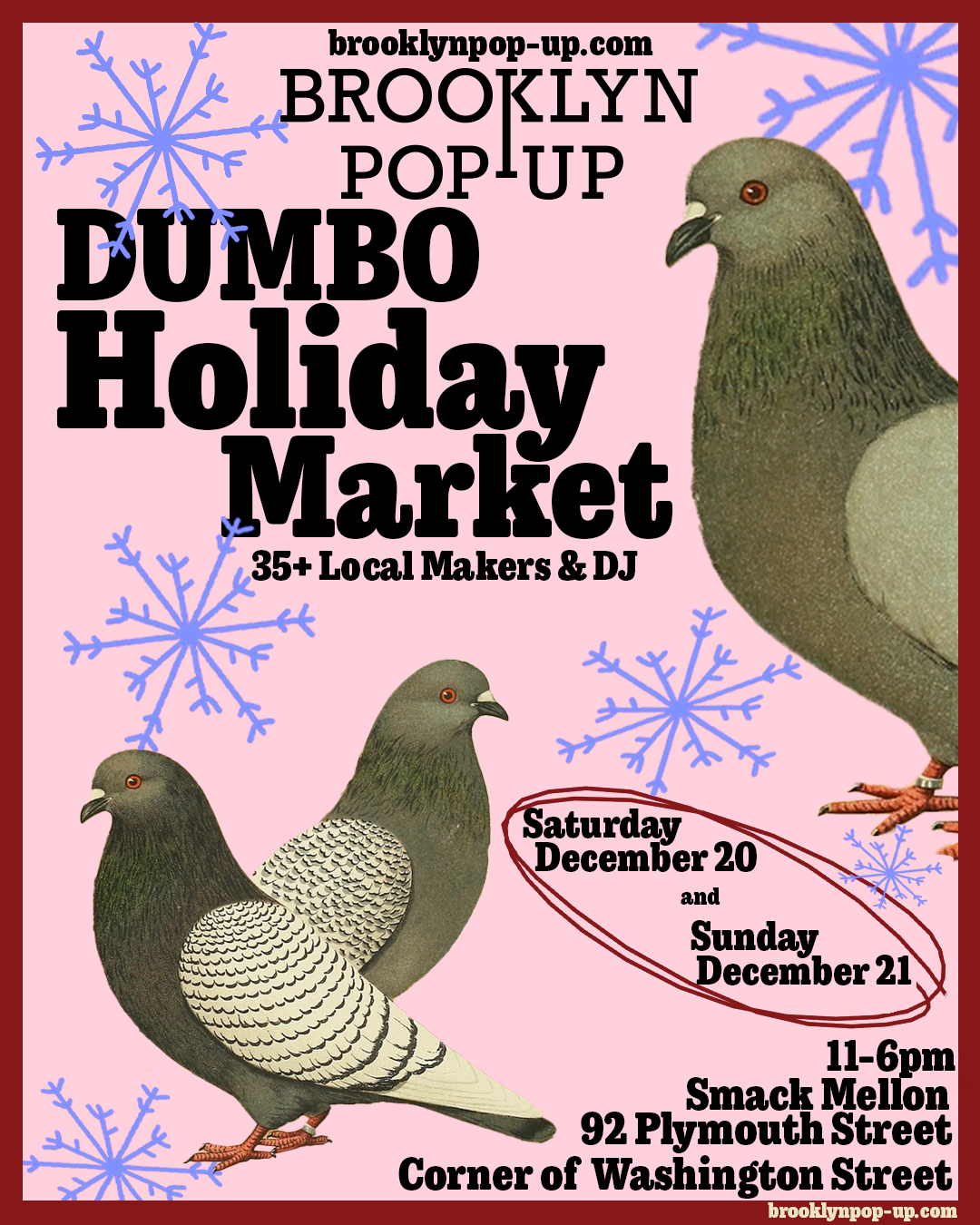 Smack Mellon 92 Plymouth Street, BrooklynBrooklyn Pop-up hosts their holiday market this year at Smack Mellon! On Saturday and Sunday, December 20-21, shop small and local with over 35 local makers.
