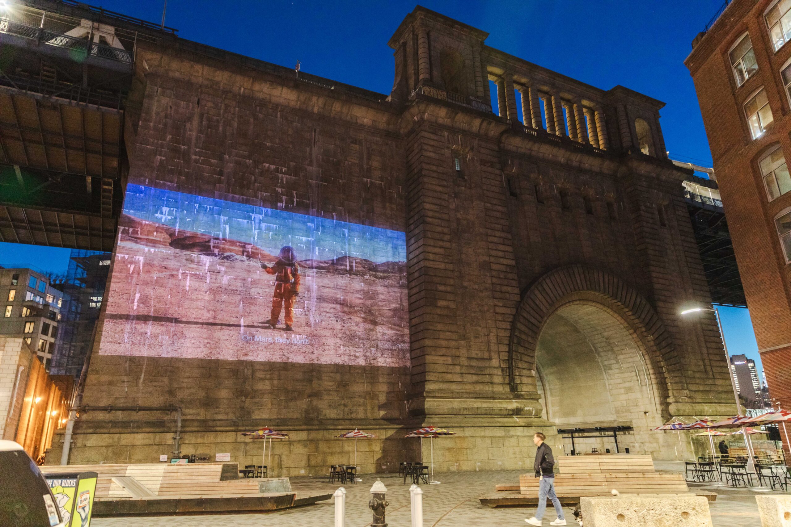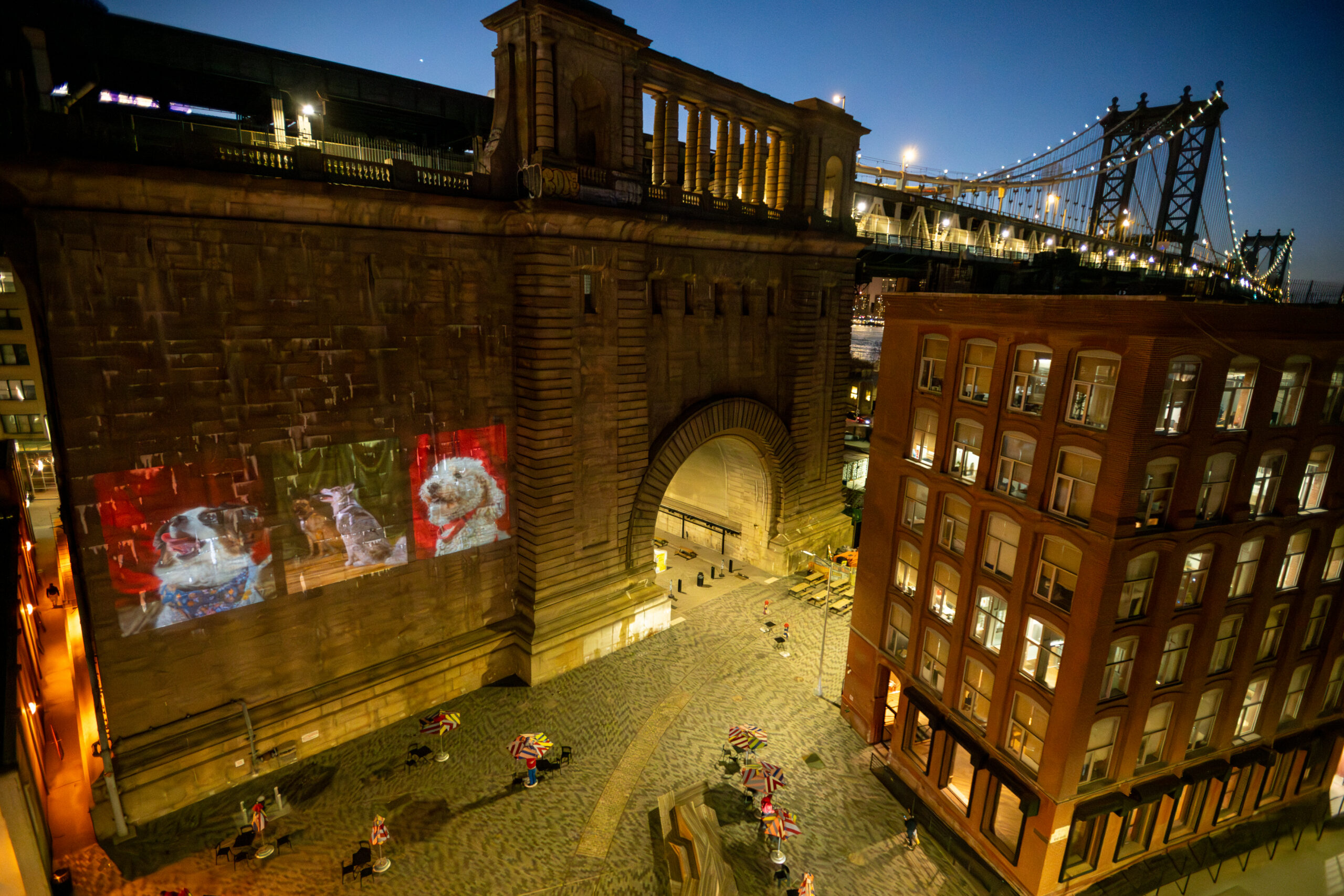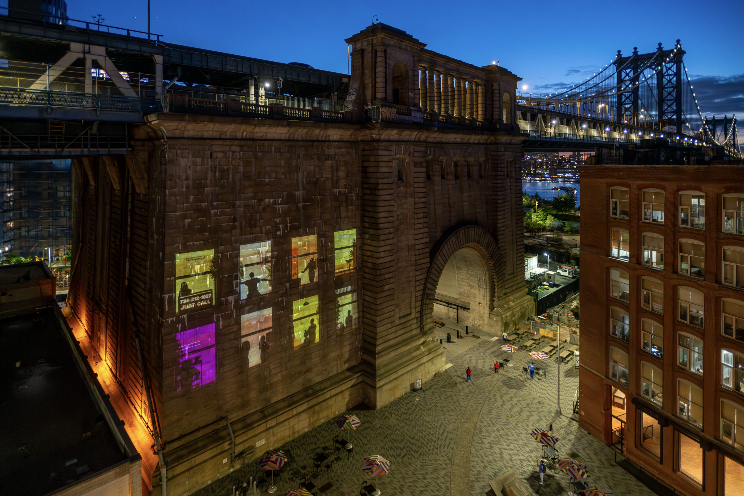 Neighborhood-wide, outdoor video art exhibition projected onto Dumbo’s most iconic infrastructure