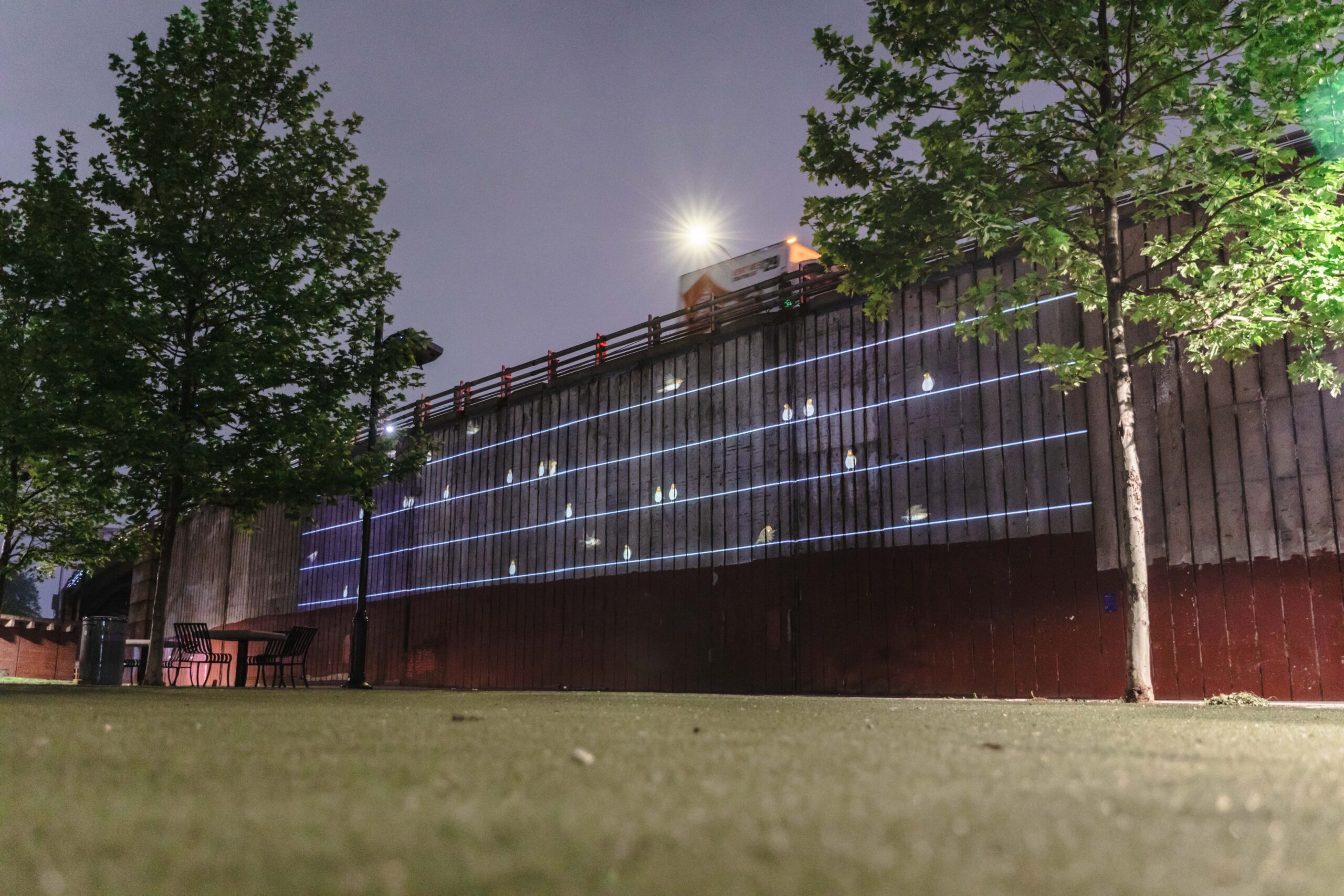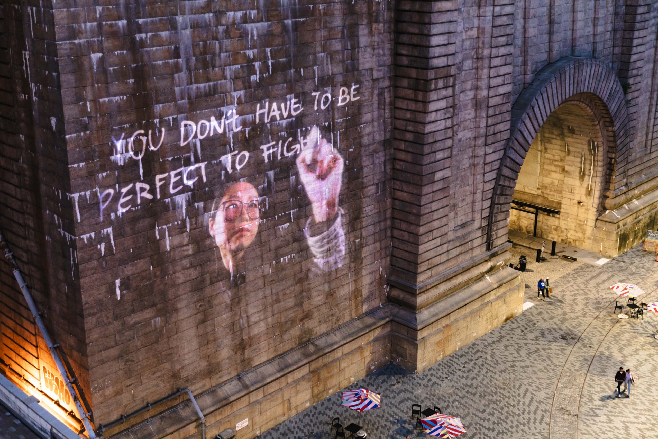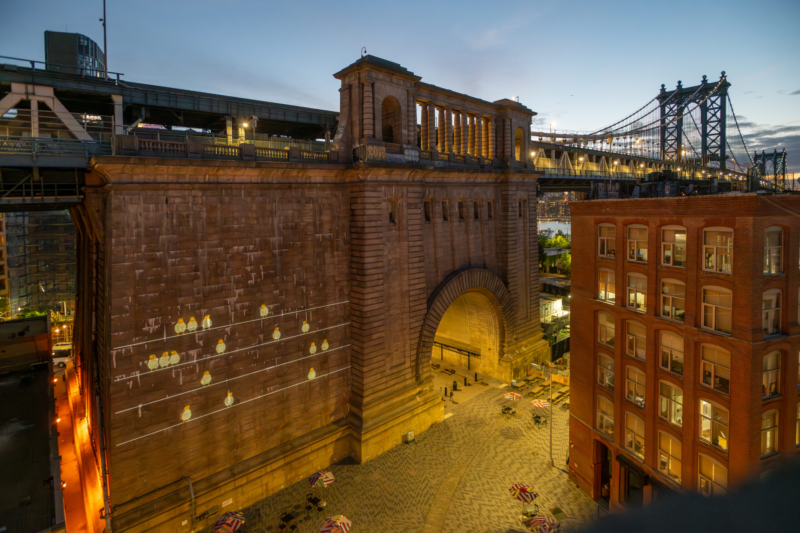 Neighborhood-wide, outdoor video art exhibition projected onto Dumbo’s most iconic infrastructure