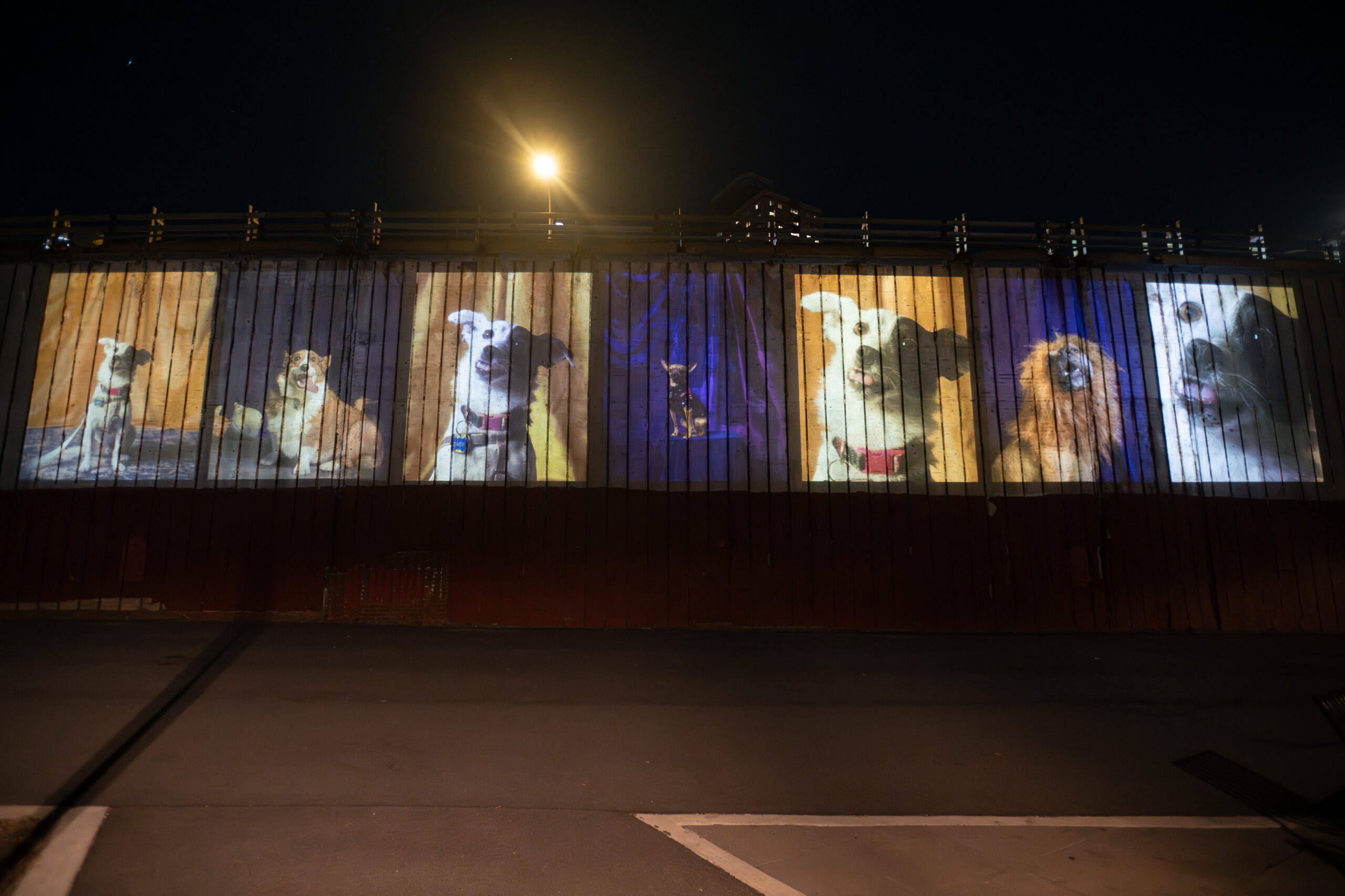 Volume Four brings the Wet Nose Pawject to Dumbo, showcasing and celebrating the local pups who walk the same sidewalks, ride the same transportation, and sniff the same air as we do. Dogs are as integral to New York City’s culture and community as the people that make up this great city. Whether they are new to the city, bright-eyed and bushy-tailed, or born right under the Manhattan Bridge, dogs always find their way to our hearts. Dumbo’s dog community is wonderfully diverse, full of tricks, and always a howling good time – and all are invited to delight in their antics, beauty, and joyful essence on the largest of screens, the BQE and Bridges of Dumbo. “Making dogs happy makes us happy,” says artist Kholood Eid. “We don’t deserve them.”